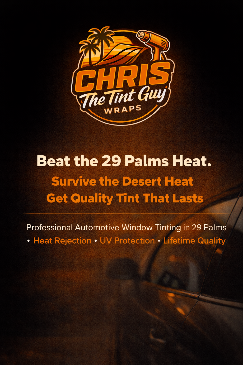 Hello everyone! My name is Chris Leon, and I’m the owner of ChrisTheTintGuy here in 29 Palms. I’ve always had a passion for working on vehicles, and over a year ago I turned that passion into a business dedicated to quality and attention to detail.